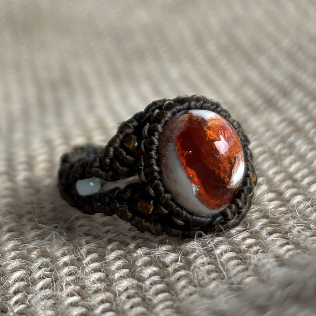 「この石と一緒に暮らしたい」「指輪にしたら綺麗じゃない?」と考えて、覚えたてのマクラメで作ったのが、Jaboo の始まりです。