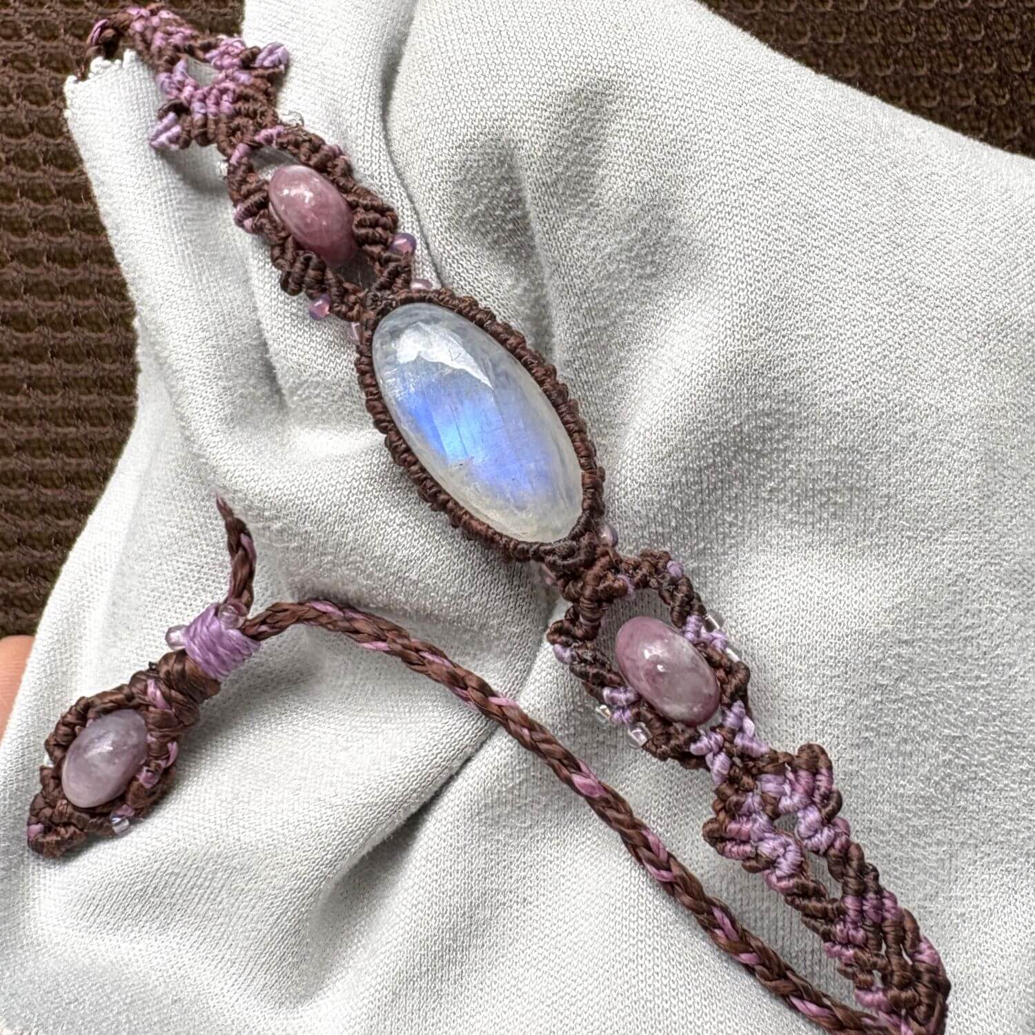 なので、しばらくはムーンストーンだと思っていました。しかしよくよく眺めてみると…奥底の青い光は、たしかにラブラドライトの深みかも。